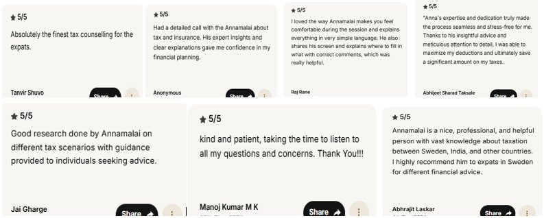 We understand the nuances of tax treaties. We can help you with tax planning to potentially save taxes and can explain the tax treaty between Sweden and your specific home country.